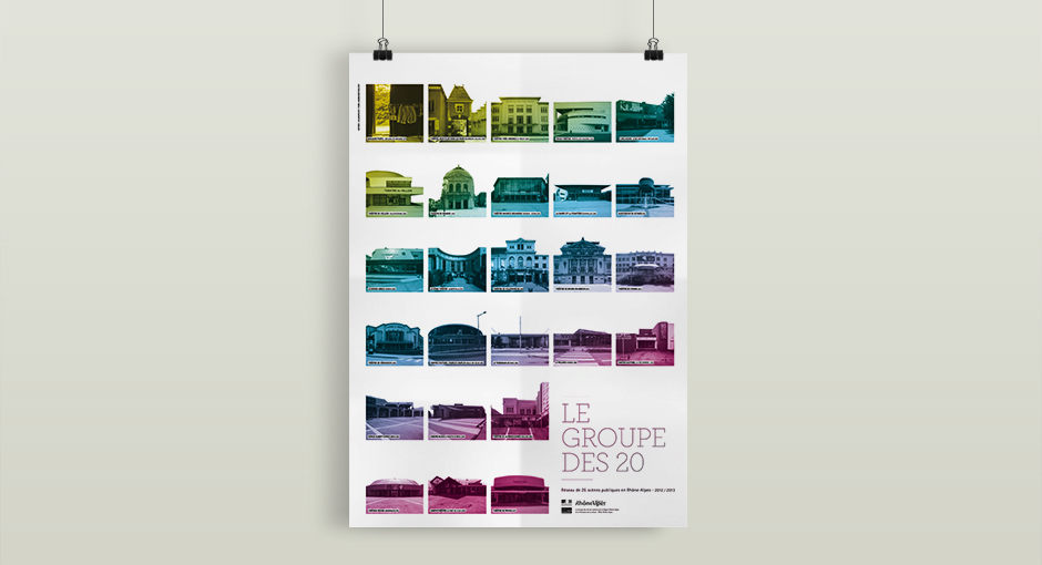 Depuis 2009, Le groupe des 20 , regroupement de théâtres en Rhône-Alpes, nous confie son image et ses supports de communication institutionnels et évènementiels.